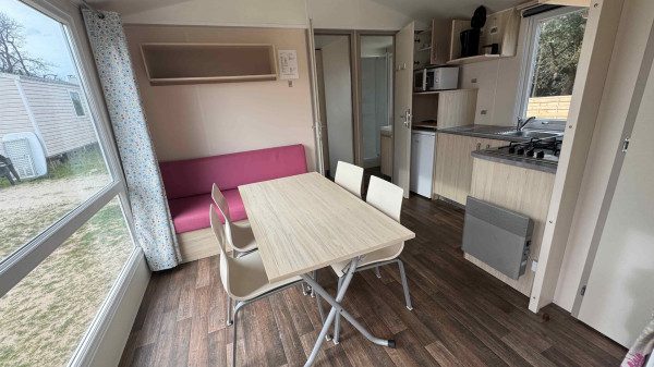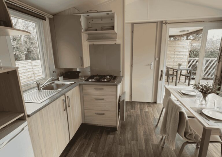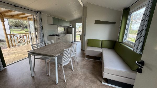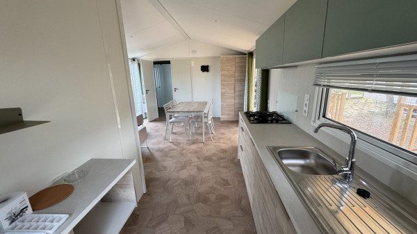 De nieuwe Premium Lodge (33 m2) is een modern, luxe huisje dat van alle gemakken is voorzien. De lodge beschikt over een comfortabele living met volledig uitgeruste keuken, een stijlvolle badkamer, een apart toilet, twee slaapkamers en een slaapbank in de woonkamer. Buiten geniet je van je eigen terras met tafel en stoelen.
