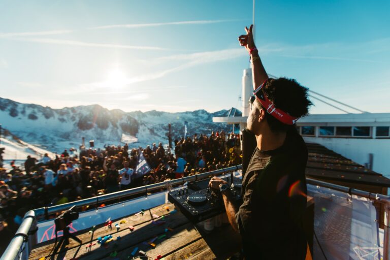 Dagelijks vind je jouw portie Après-Ski aan onze prachtige stage op het terras van de Folie Douce.